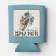 Talk Derby To Me turquoise can coolers feature a watercolor racehorses and jockeys illustration, the date, your name and the text Derby Party on the front and back. Great for party favor keepsakes. MATCHING items in our collection.