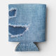 Porta-lata Textura do tecido denim rasgada, matizes azuis.