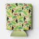 Padrão ininterrupto de verão colorido com tucanos engraçados, melancias suculentas, abacaxis, flores tropicais e deliciosos cocos jovens.