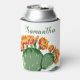 Acalme-se este verão e mantenha suas bebidas legal com esta lata de impressão de cacto de pera picante boêmia. O design de cacto de pera picante apresenta flores vibrantes em laranja e cacto amarelo e seu nome personalizado em um roteiro verde. É o presente perfeito para si mesmo ou para um amigo que ama cacto!