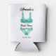 Este incrível resfriador de latas tem um design elegante com detalhes de lingerie de renda turquesa que dá o tom para um evento glamoroso e memorável.