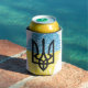 Identidade ucraniana. Para todos os ucranianos. O símbolo Tryzub sobre um padrão de impressão digital da bandeira da Ucrânia.