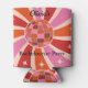 Este é um belo cooler personalizado para festa de despedida retro com bola de discoteca no meio de um sol radiante retro em rosa, laranja e vermelho com estrelas retrô. Você pode alterar o nome e as palavras na lata usando o botão personalizar.