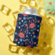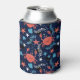 Um bom padrão do mar com caranguejos. Caranguejos laranja, estrelas-do-mar, conchas azuis e algas num fundo azul escuro.