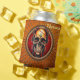 Um crânio cuja presença inspira admiração e fascínio. Seu crânio é marcado pelo tempo, carregando um tesouro radiante em seu centro, uma pedra preciosa que pulsa com cores brilhantes e guarda o segredo da vida e da morte. As tomadas oculares do crânio brilham como dois carvões brilhantes, vermelho vivo e perfurando, como se eles pudessem ver os segredos mais profundos da alma. Uma coroa de folhas de filigre, cujas veias verdes contrastam com o osso pálido. Este abraço vivo simboliza o eterno ciclo da vida e da morte, enquanto uma cadeia articamente trabalhada a rodeia - um sinal da ligação inseparável entre os mundos.