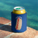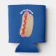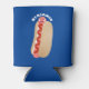 Este cachorro quente engraçado está pronto com ketchup para o almoço! Desenhado no estilo de desenho animado.