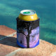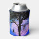 Lua de cheio fantástica de matizes roxos e céus azuis cobaltos com um gato preto a olhar para ele