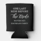 Prepare-se para celebrar com o nosso refrigerador de bebidas preto e branco "One Last Ride Before the Bride!" — perfeito para manter suas bebidas frias durante a última despedida de solteiro! Projetado com diversão e aventura em mente, este mais frio é o acessório ideal para o noivo e sua tripulação enquanto eles desfrutam de sua última noite de liberdade. Com o seu discurso ousado e brincalhão, é certo que faz uma declaração e mantém as bebidas fluindo a noite toda. Não perca esse partido essencial!