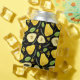 Padrão com peras amarelas doces com folhas, flores, ramos. Frutas orgânicas saudáveis sobre fundo preto. A mão traçou a decoração sobreposta. Ilustração de desenho Joia Pearliciosa: Frutas Doce Grace the Darkness. As orelhas amarelas doces, flores e ramificações dançam em fundo preto. fundo, textura, comida, verão, ilustração, folha, fruta, jardim, sem costura, frutas, tecidos, saudáveis, coloridas, naturais, orgânicas, amarelas, têxteis, estação, pera, limonada