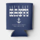 Coolers de lata azuis e brancos listrados "vamos ser safadinhos" para uma festa de solteiro / solteirona. Personalize com o seu próprio texto.