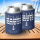 Copo refrigerador listrado azul e branco "vamos ficar nauti" para uma despedida de solteiro(a). Personalize com o seu próprio texto.