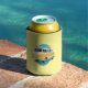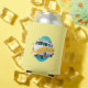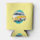 design de viagem de verão legal com um barramento em cores brancas e amarelas sobre a elipse azul.
