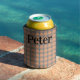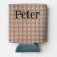 Esta lata de resfriamento tem um design de arte de fãs de teal se repetindo através do design em um campo de laranja. Mantenha o nome, altere-o ou elimine-o completamente.