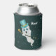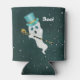 Esta lata ou garrafa refrigerante tem um fantasma branco vestido flutuando num céu noturno estrelado vestindo um chapéu azul e segurando uma bengala preta aparada de ouro com um crânio de ouro. Personalize o texto do Boo com o modelo.
