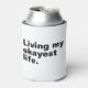 Porta-lata Vivendo minha vida mais agradável. design de texto