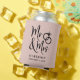 Dê uma torrada de casamento e seus convidados de casamento uma lembrança divertida mantendo o seu dia especial com este rosa pincelado personalizado pode resfriar com "Sr. & Sra." escrito em um grande roteiro e uma ilustração de dois anéis de casamento juntos. Adicione seu nome e data do casamento.