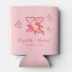 Porta-lata Whimsical Hand Drawn Romantic Pink Red Wedding