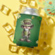 A cheerful leprechaun illustration dressed in classic green, holding a frothy beer and surrounded by shamrocks and sparkling accents — perfect for St. Patrick’s Day themes and Irish‑inspired celebrations.