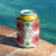 Can Cooler Koozie Sleeve printed with Whimsical Red Flowers Green Leaves On White Art fun digital graphic Illustration design with soft translucent and solid colors by TheFabricSeal print on demand shop at Zazzle.com #ZazzleMade ©️Original. https://www.zazzle.com/store/thefabricseal