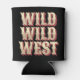 Design de texto "Selvagem Selvagem Oeste" com letras riscadas em cores amarela, vermelha e bege