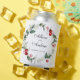 Esta delicada coroa aquática tem cores tradicionais de Natal, verde-floresta, verde-oliva e amora vermelha sobre fundo branco brilhante. Os nomes da noiva e do noivo estão no centro da coroa, com a data do casamento logo abaixo. O verso tem um arranjo floral coordenado com texto que diz "Esta é a estação a ser casada."