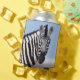 Porta-lata Zebra olhando para você com uma foto azul do céu
