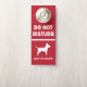 Não Incomodar o aviso do quarto de hotel ou de outra porta com ícone de cão e aviso "Cachorro no quarto". Viagem com o seu próprio sinal de porta para motel, hotel, casa ou unidade de aluguer. Atenção de ficar branco em sinal vermelho, embora você possa mudar a cor de fundo em frente e atrás se preferir outra cor. Esta placa também é útil para casa se você tiver trabalhadores ou estranhos na casa e trancar seu cachorro.