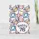 Coloridos círculos de rabiscos em branco para 76 anos. O texto pode ser alterado para qualquer aniversário de idade.