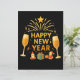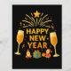 Celebrate the New Year with this warm golden festive illustration featuring Santa figures, gifts, shining stars, and elegant party elements. A bright and joyful design that adds a magical touch to every New Year celebration