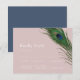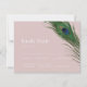 Um conjunto minimalista, porém lindo, de cartões de resposta de RSVP de casamento, apresentando uma elegante pena de pavão acima das informações e detalhes do seu casamento.