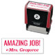 Este design de carimbo motivador apresenta a mensagem inspiradora "EMPREGO INCRÍVEL!" e o nome de um tutor personalizado. Poderia ser usado por um professor ou educador ao marcar missões, para reconhecer que o aluno fez bem.