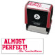 Este encorajador design de carimbo mostra a mensagem motivacional "Quase Perfeito!" e o nome de um professor personalizado. Ele poderia ser usado por um professor, educador ou orientador ao marcar trabalhos, para indicar que um aluno fez bem.