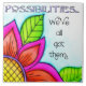"Possibilidades" é a pintura a aquarela de um quarto fechado de uma flor branca, em negrito e cores brilhantes de rosa e laranja sobre fundo lacrimogêneo. Acentuar a design é o texto manuscrito, "Possibilidades... Todos nós os temos". Este design colorido foi criado por Designs Debi Payne. Selecione os produtos que você usa mais ou que verá com mais frequência na sua vida diária e deixe-os servir de inspiração e motivação para que você se concentre e siga o caminho para alcançar seu maior crescimento pessoal e desenvolvimento possíveis.