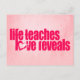 Postal "A vida ensina o amor revela" slogan rosa cartão p