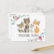Postal Animais Da Floresta Florestal Rosa Obrigado Cartão