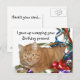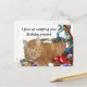 Tabuleiro de laranja frustrado enredado em fitas postais de aniversário. Texto original "Eu desisti de embrulhar seu presente". Texto de trás "Aqui está o seu cartão". Adequado para todas as idades. O texto pode ser alterado ou removido com o botão PERSONALIZAR