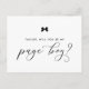 Bonito cartão de proposta do garoto da página temática parisiense. Peça à família e aos amigos que façam parte do seu casamento com este cartão personalizado "Você vai ser meu garoto de página". Ele apresenta um arco preto e um roteiro elegante. Personalizar adicionando um nome e uma mensagem