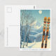 Saudações das montanhas nevadas de Arlberg, Áustria, na Europa! Esperamos que você esteja tendo uma maravilhosa férias de esqui. Este cartão postal apresenta uma paisagem montanhosa cinza-azulada deslumbrante com pranchas de esqui retrô em um padrão tribal laranja.