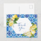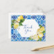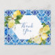 Azulejo floral de limão mediterrâneo cartão de agradecimento Elegante cartão de agradecimento de azulejo azul de aquarela moderna.