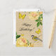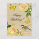 Postal Belo cartão de aniversário com rosas e pássaros