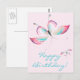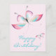 NewparkLane - Cartão postal alegre e colorido Boho Chic, com borboletas elegantes. Com um fundo rosa suave e 'Feliz aniversário!' em uma tipografia divertida e turquesa. Tarjeta de aniversário divertida e boho chic!