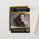 Faça uma declaração em negrito com estes cartões postais de promocional personalizados em brilho de ouro elegante com fundo escuro. Com espaço para seu nome, título, ano e mensagem pessoal, você também pode adicionar seu logotipo no verso, para um toque pessoal. Basta carregar sua foto e editar o texto de um cartão de promoção de autografo de paginação impresso de forma elegante para assinar aparências e eventos. Para editar o código QR, copie e cole o URL do seu site ou conta de mídia social no modelo e o código será gerado automaticamente. Este modelo funciona melhor com uma foto horizontal ou orientada à paisagem.