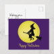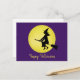 Convidado de bruxas de Halloween, junte-se a nós para uma bruxaria... Esta design apresenta uma bruxa voadora sobre sua vassoura com o luar da colheita e fundo preto nebuloso. Design editável, todos os aspectos deste design são editáveis. A silhueta de bruxa voando sobre uma vassoura velha.