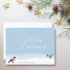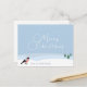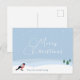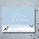Um cartão-postal Feliz de Natal com um toucinho em primeiro plano e árvores de abeto numa paisagem nevada; os textos são personalizáveis. Holly ilustra a parte traseira da placa. Perfeito para enviar aos seus amigos, família ou até mesmo aos seus clientes para o Natal ou Ano Novo!
