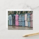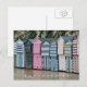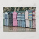 Uma bela vista de cabines de praia coloridas em Broadstairs, na Inglaterra, impressa em um cartão postal.