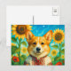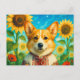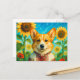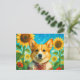 Lindo Corgi Ucrânia Girassóis Ucranianos Welsh Corgi Rainha Verão Cartão Postal para Postcrossing