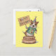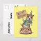 Postal Cachorro em pé sobre um bolo segurando um cartão d