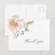 O nosso cartão de agradecimento floral clássico inclui caligrafia gratuita e fluida, flores rosa pálido, folhas verde-escuras e caqui com ramos num fundo branco. O verso está em branco para que possa escrever a sua própria mensagem com nomes na parte inferior. Perfeito para casamentos, chá de noiva e chá de bebé. Para alterar ou remover a cor do fundo ou o texto no verso, clique no botão 'Personalizar'.