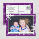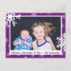 Adicione sua foto favorita de família a este fundo roxo giro com cartão postal de Natal com flocos de neve.
