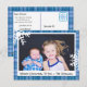 Postal Cartão com fotos da Família Xadrez Azul Feliz Nata